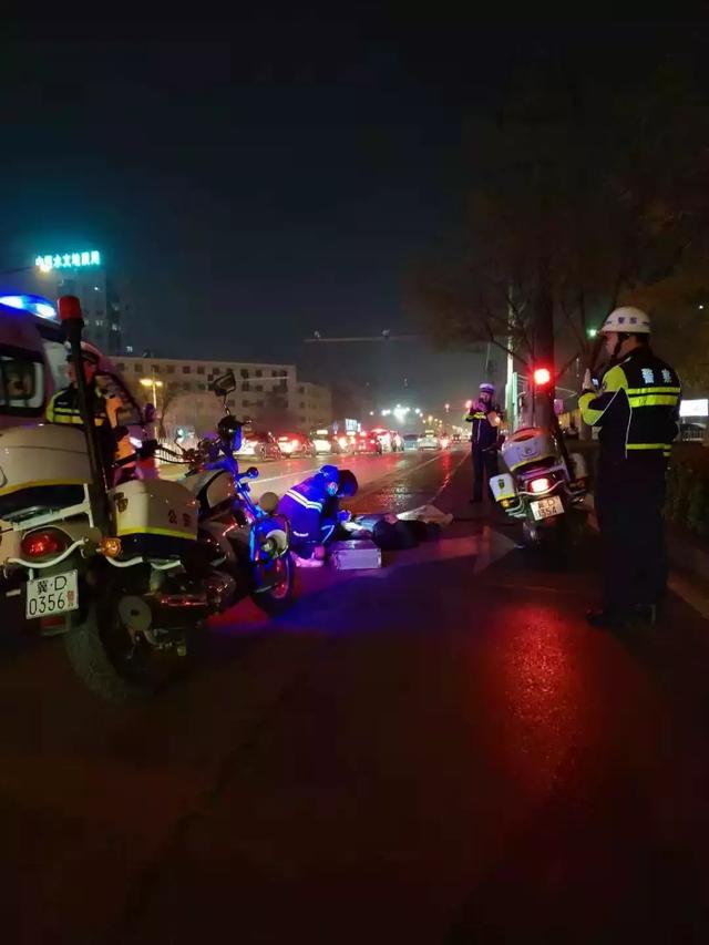 經(jīng)民警查看,男子臉部有明顯擦傷,出血嚴重,因飲酒太多男子已有些神志不清,無論民警怎么詢問其個人信息都默不作答。時值初冬,夜間道路冰涼,民警勸說扶其起身,男子拒絕,隨后民警組成人墻用身體為其擋風避寒。直到120救護車趕到,民警幫助醫(yī)護人員將其扶上擔架,并向事故科民警做完交接后,繼續(xù)投入執(zhí)勤工作。